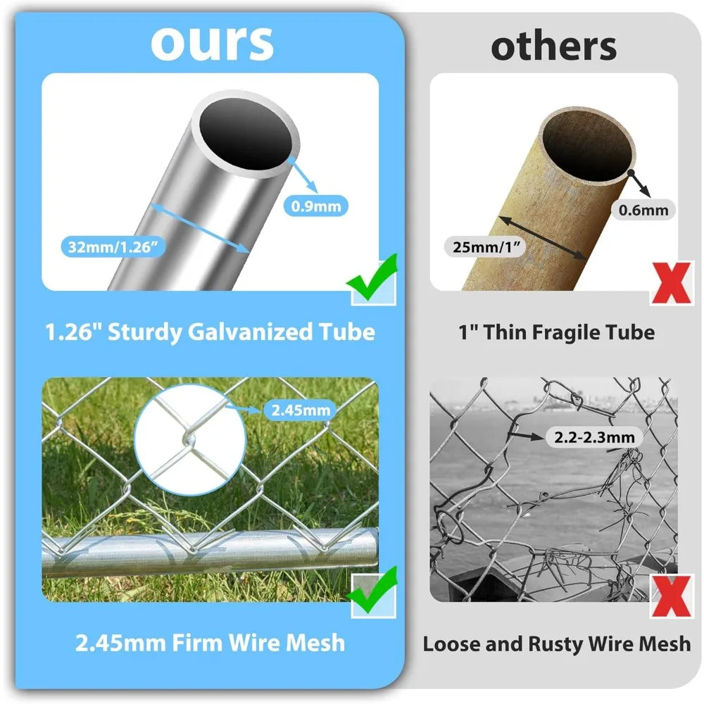 - 【⭐ Heavy Duty Made】Upgraded large dog kennel outdoor made of 1.26" galvanized metal tube and 2.45 mm thicker steel wire mesh, solid and rust-proof, more durable than other products on the market. Raised legs can be inserted into the ground outdoors to hold the cage in place for added stability.