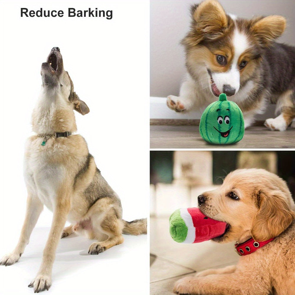 Adorable squeaky plush toys - 12 pack - features watermelon (whole and slice), ice cream, star, banana, lobster, apple, chicken leg, orange, triangular watermelon, flip flop, pumpkin, and carrot in cartoon designs. Their vibrant colors and charming shapes are the dog's top picks.