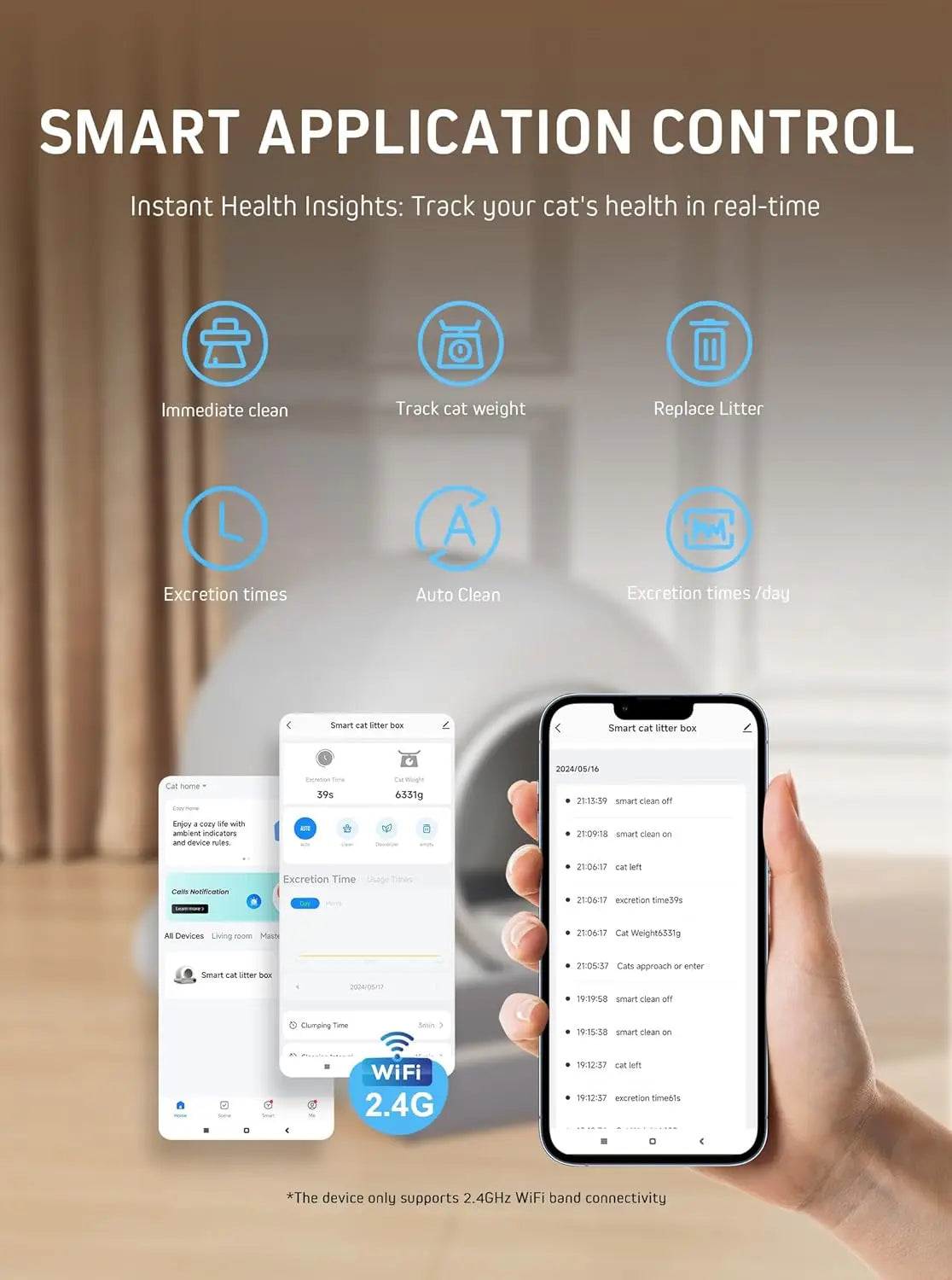 - 😻【Manual Control and App Control】Manual control can be adjusted - Auto Clean / Timer Clean / Manual Clean, in addition, the app control has more rich functions for you to experience (please note: the app is only compatible with 2.4GHz Wi-Fi).