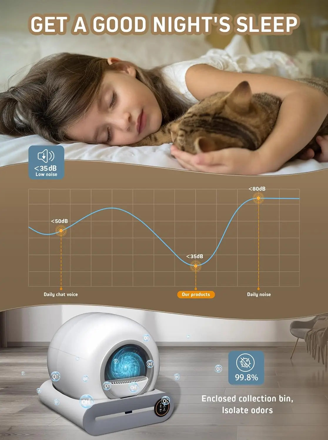 - 😻【Odour Remova】 The faecal collection box is a separate module to isolate the odour from the outside world, in addition to this, the device will use negative ion (physics) to eliminate the odour, always keep the indoor air fresh. All components inside the machine can be easily disassembled for cleaning.